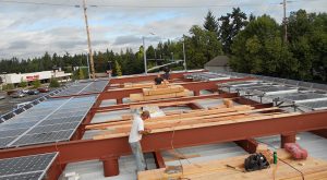 In 2014, a second Chevron station in the I-5 corridor in Woodburn, was converted to a net zero station, this time incorporating a 1,900 square foot sedum roof with solar panels.